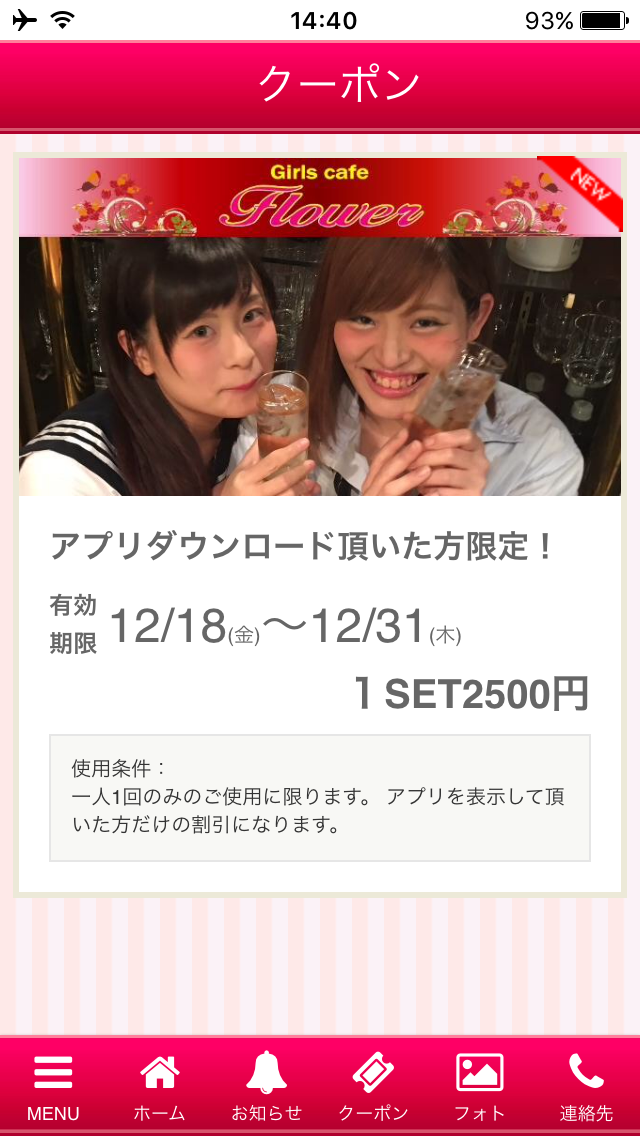 赤羽ガールズバー Girl's Cafe FLOWER(フラワー)の公式アプリがリリースされました。 お知らせでは出勤情報やキャストブログがご覧いただけます。 フォトではキャストの写真等がご覧いただけます。 クーポンではお店のお得な情報が満載です。 この機会に是非ダウンロード下さい。